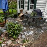 I asked Rick to jack hammer the concrete slab up and demolish the table. I then wanted him to add stepping stones and rock in its place. As in all old homes there were some surprises but Rick handled them perfectly and our patio looks incredible!